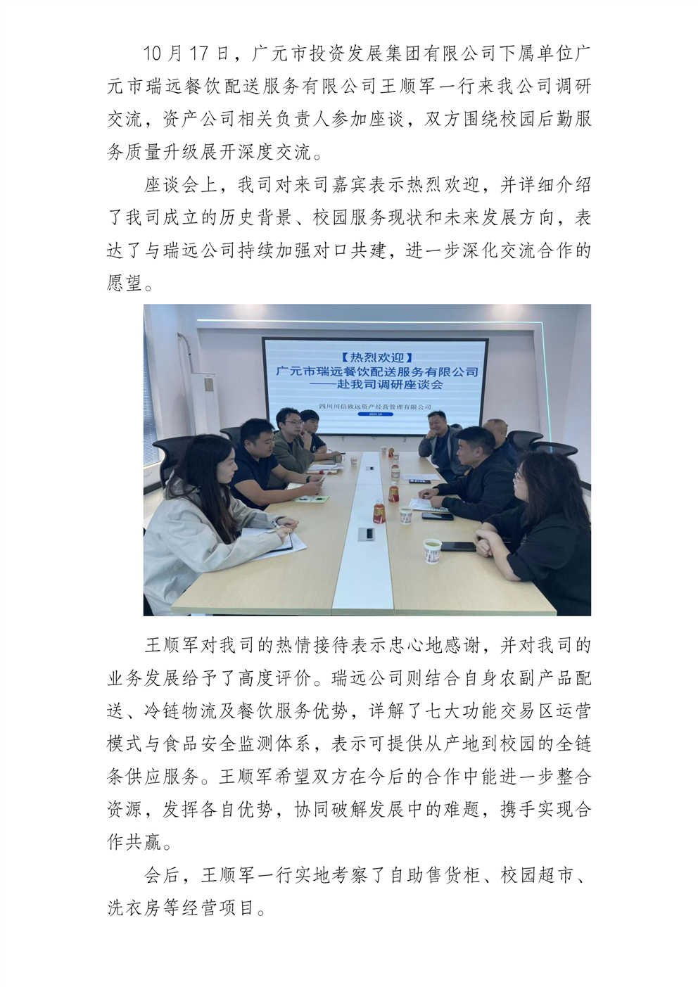 广元市瑞元餐饮配送服务有限公司一行来我司调研