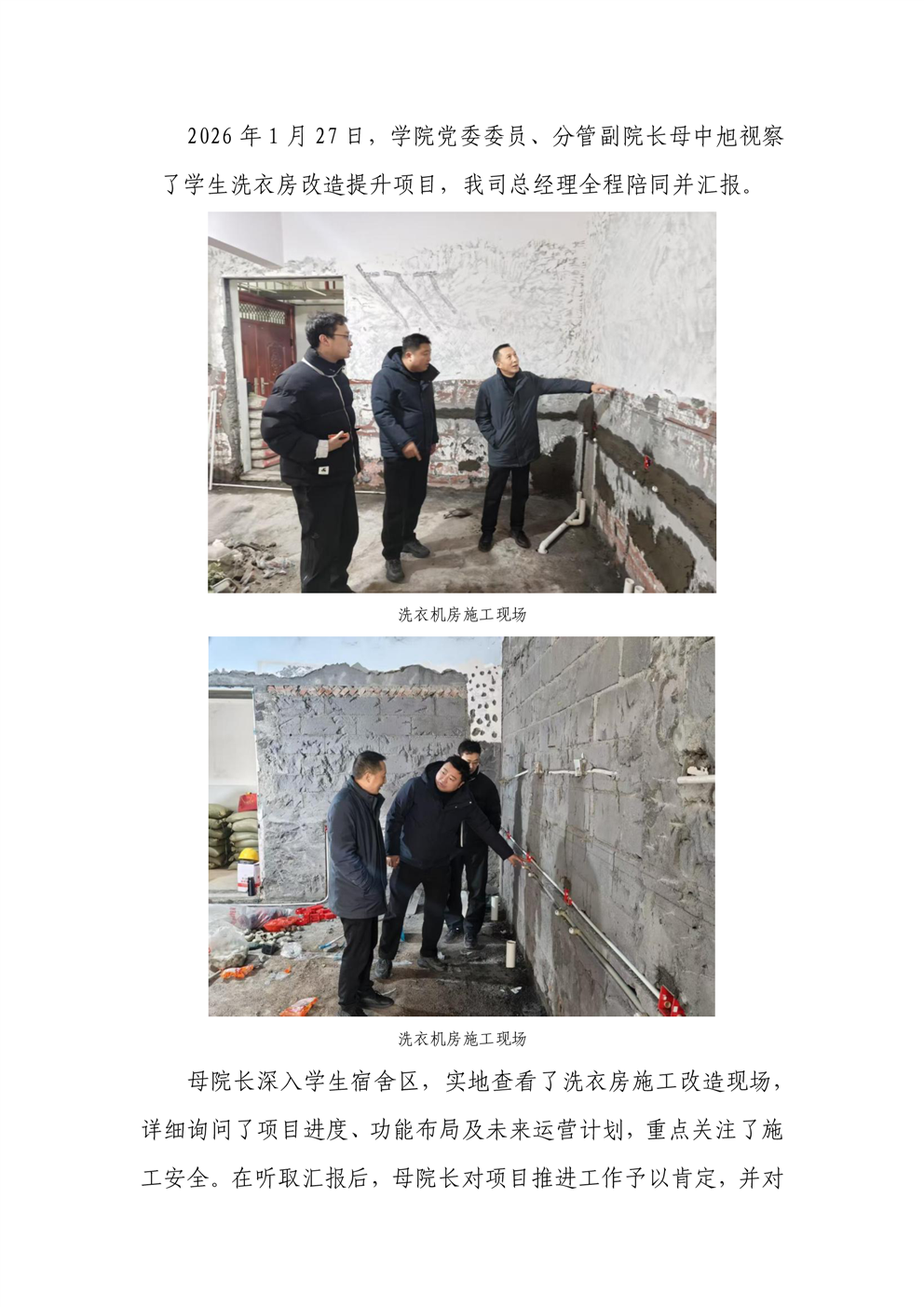 学校分管领导母中旭视察学生洗衣房改造工作