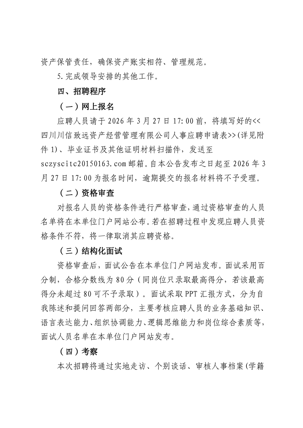 四川川信致远资产经营管理有限公司2026年社会招聘公告