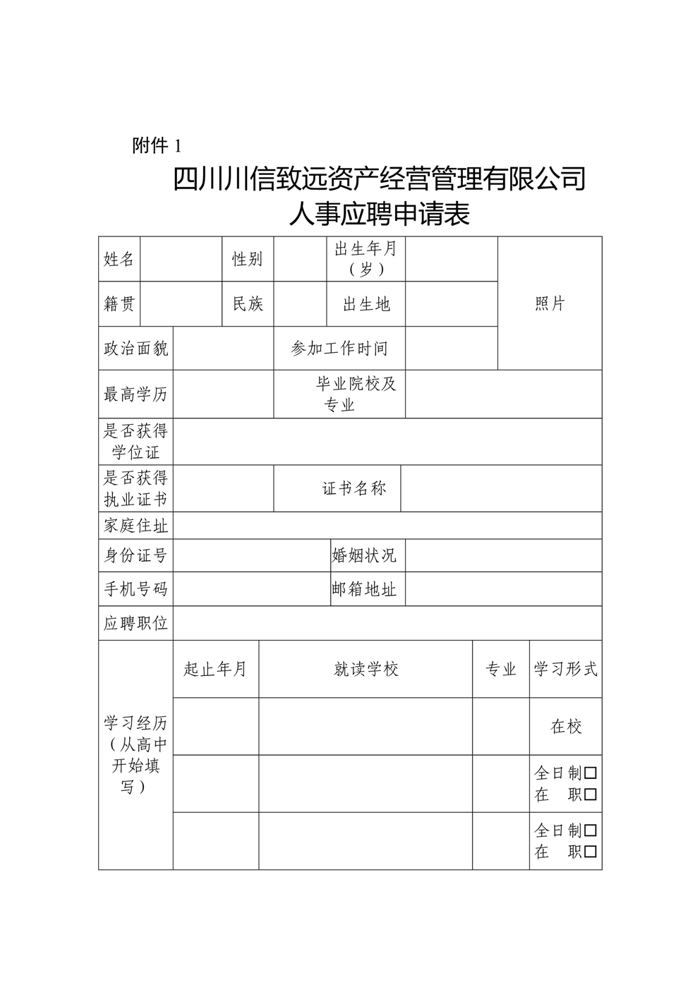 四川川信致远资产经营管理有限公司人事应聘申请表.docx